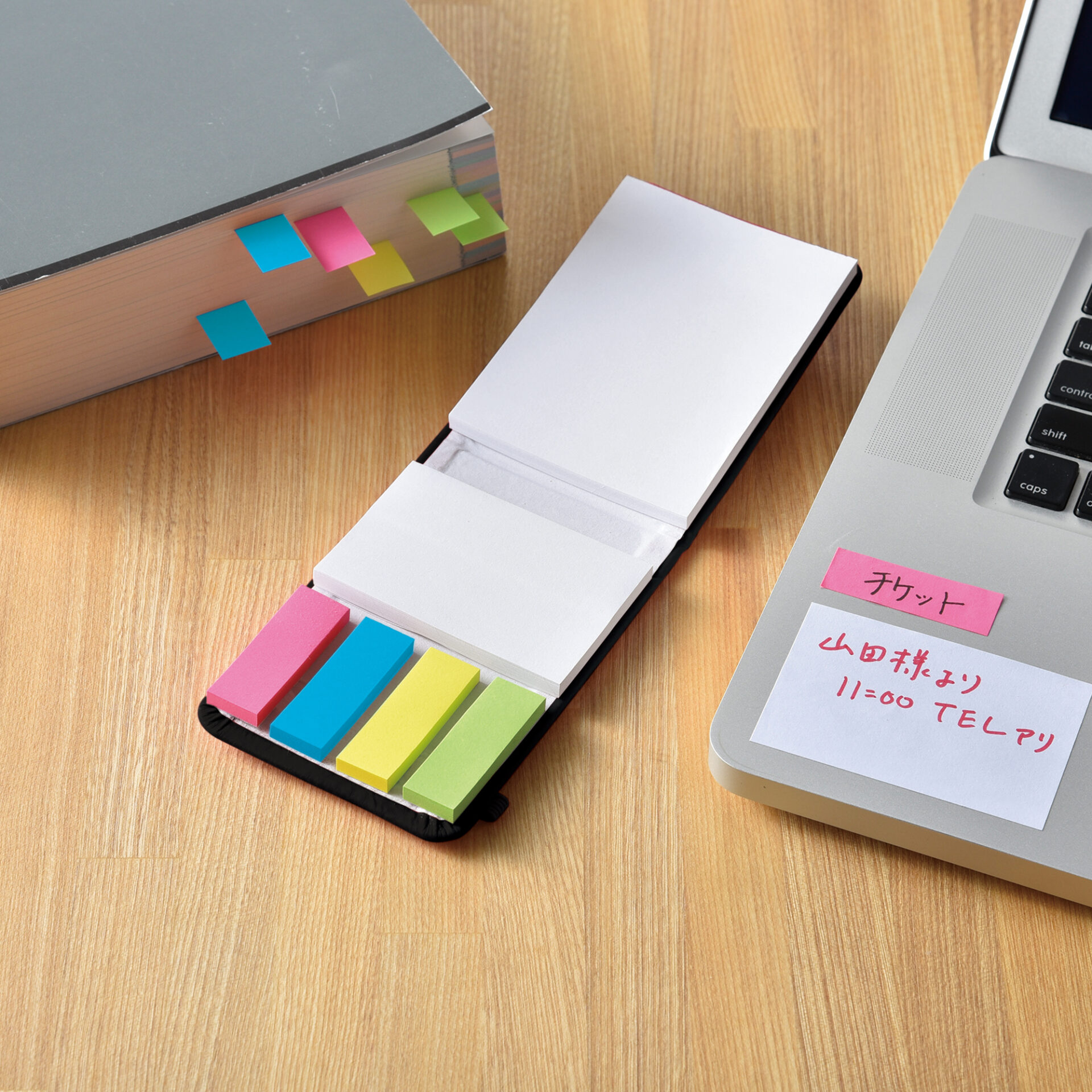 string(79) "4色ふせんと大小メモのセットに丈夫な表紙が付きました。"