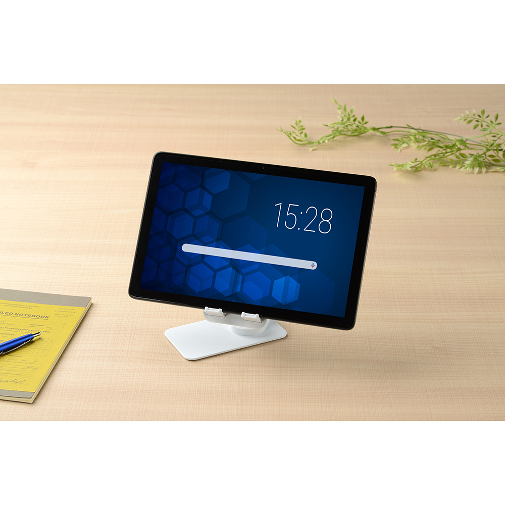 頑丈な土台でスマホやタブレットをしっかりと支えます。スタンドは360°回転可能。